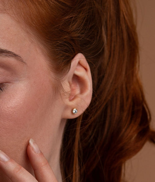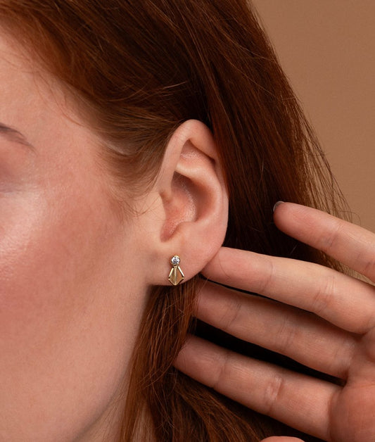 Yellow Gold Round Brilliant Cut Diamond Stud Earrings