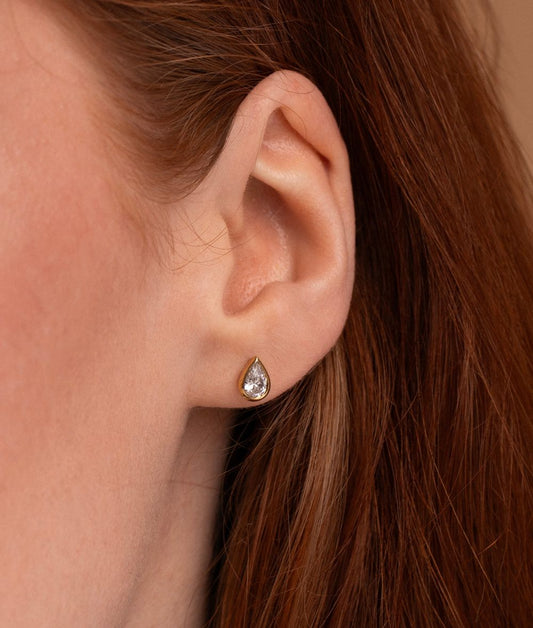 Yellow Gold Pear Cut Diamond Stud Earrings