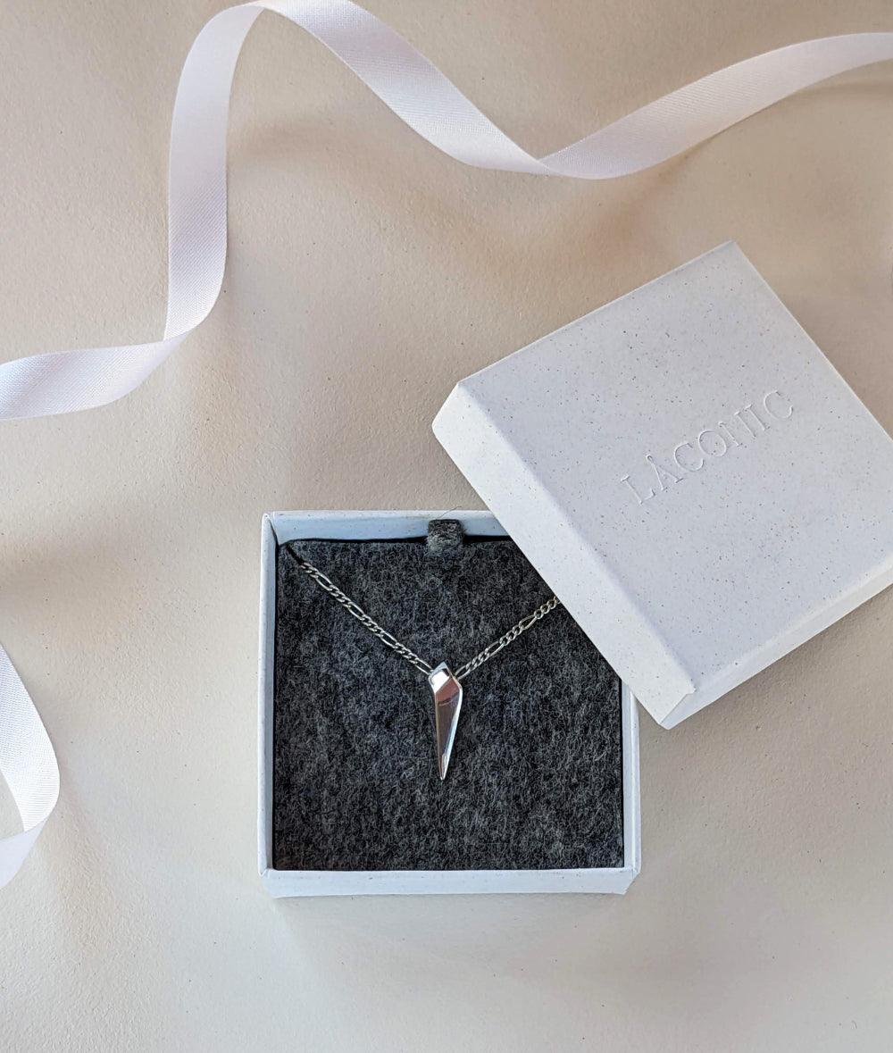 ~ This Facet silver long drop pendant comes with an eco-friendly Laconic gift box.